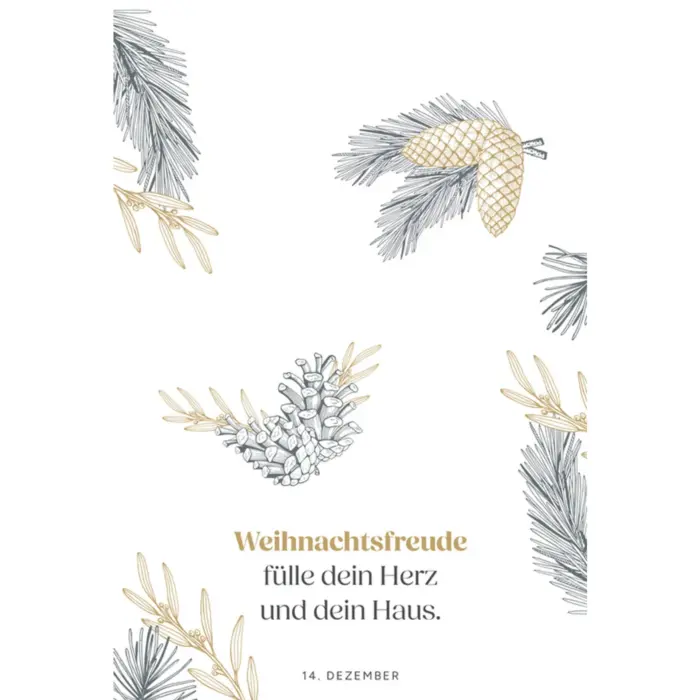 An diesem wunderschönen Adventskalender hat man mehrmals Freude. Die liebevoll gestalteten Seiten begleiten mit weihnachtlichen Gedanken und Bibelversen durch den Advent und sind ein dekorativer Blickfang.